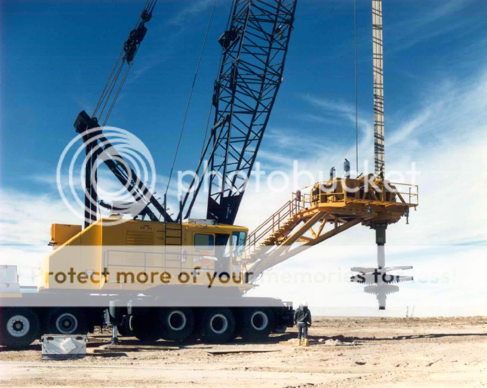 Their was also a Manitowoc 6000 Crawler Crane at the Nevada test site it was Yellow and Black in color.  Was a series 2 rated at 600 tons. Had a similar attachment as the 4600 series 5 crawler crane in the picture above with the big beam attaching to a pair of crawlers in the front. That yellow 4600 series 5 could lift 750 tons. I actually found that exact crane for sale. Lampson had recently purchased it. Sitting in their Washington yard. Here's the link to more pictures on it.  http://gsaauctions.gov/gsaauctions/aucdscLnk?sl=91QSCI13357701  Does anyone else have pictures of them rare Manitowoc cranes that were at the Nevada Test Site thanks. The 4600T series 5 truckcrane was a awesome rig as well two were built for that site.